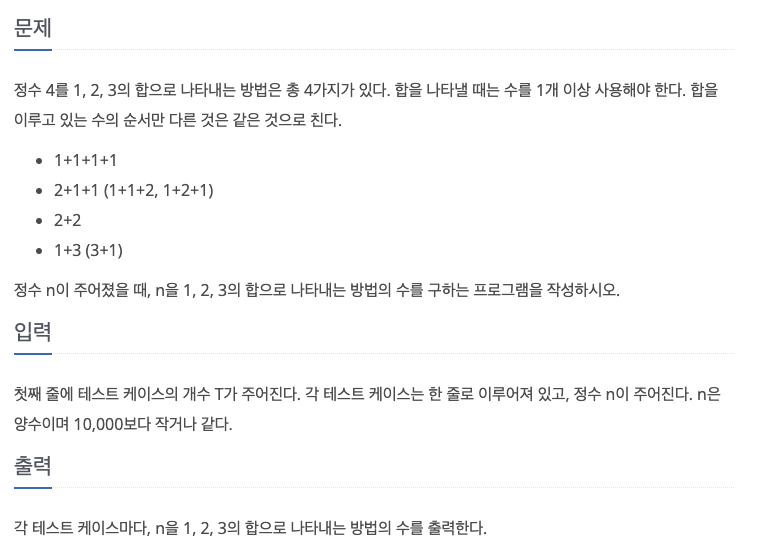 처음에는 이항계수 문제인 줄 알았다. 그러나 순서 상관 없이 오직 정수 1, 2, 3을 이용해서 모든 수를 만드는 문제이다.